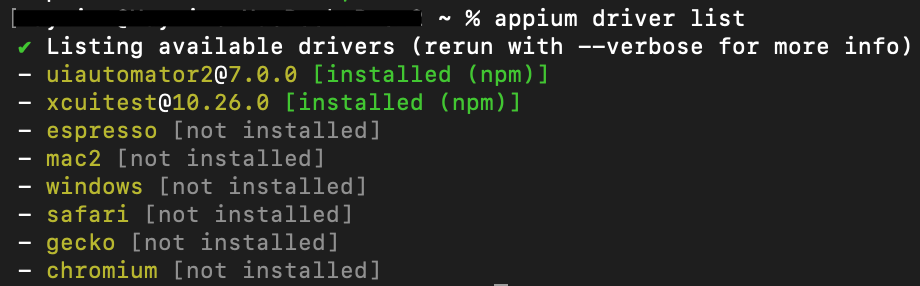 Run the driver list command to check if the XCUITest driver was installed correctly.