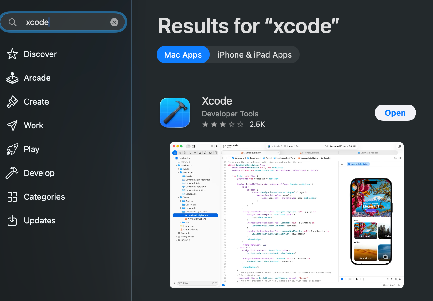 Open the App Store, sign in with your Apple ID, then download and install Xcode.
