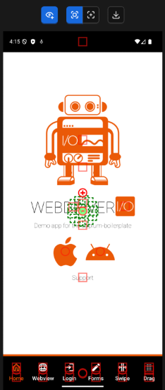 - Generic actions — tap and swipe directly on the application screenshot